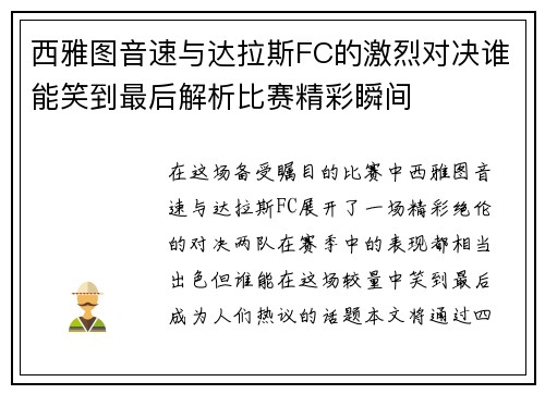 本文将对即将进行的竞彩雷恩与尼斯之间的激烈对决进行详细分析和赛前预测。首先,我们将从两队近期状态入手,分析他们在近几场比赛中的表现及其对本场比赛的影响。接着,我们会探讨两队的历史交锋记录,了解彼此之间的相互克制情况。此外,还将关注人员伤病情况以及战术安排,这些因素都可能直接影响比赛结果。最后,我们会...